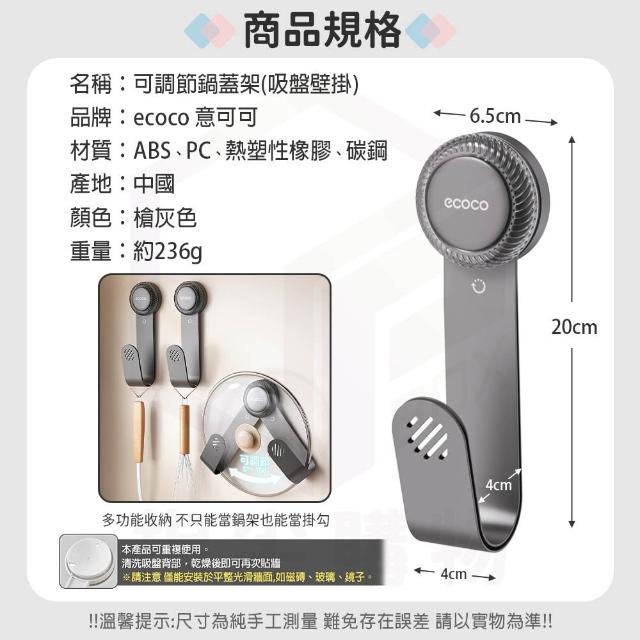 ecoco壁掛鍋蓋架 吸盤式 鍋蓋架 砧板架 沾板架 菜板架 刀砧架 碗盤架 掛勾 廚房 收納 置物