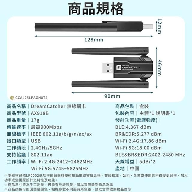 捕夢網無線網卡 藍芽接收器 WIFI接收器 雙頻網卡 USB無線接收器 電腦 筆電
