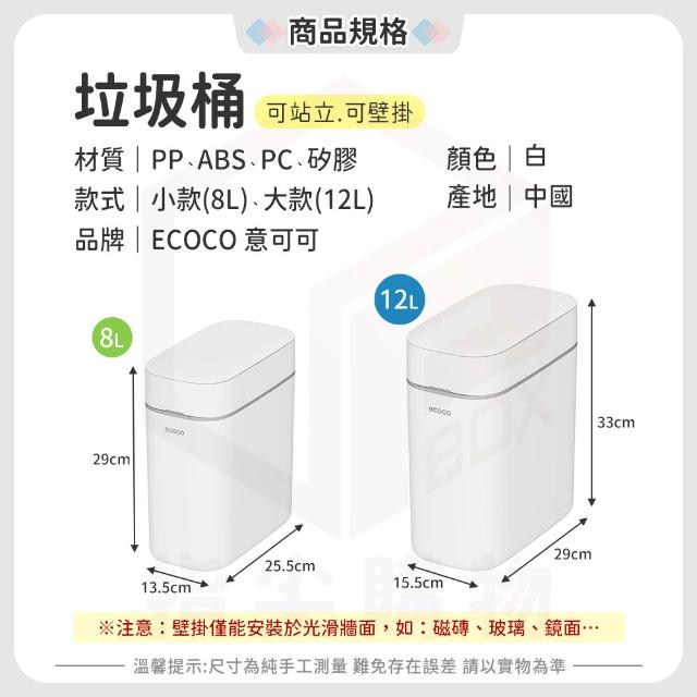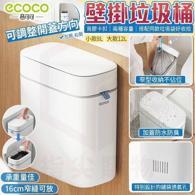 ecocoEcoco【窄型垃圾桶 可掛牆面】按壓式垃圾桶 壁掛 窄縫垃圾桶 掛式垃圾桶 垃圾筒 浴室垃圾筒 廚房垃圾筒 窄縫垃圾桶