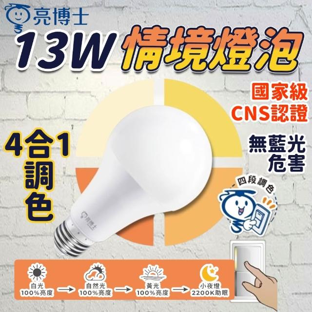 亮博士國家認證 亮博士 三色燈泡 13W 壁切四段燈泡 四合一情境燈泡 球泡燈 led燈泡 無藍光 e27 led 燈泡