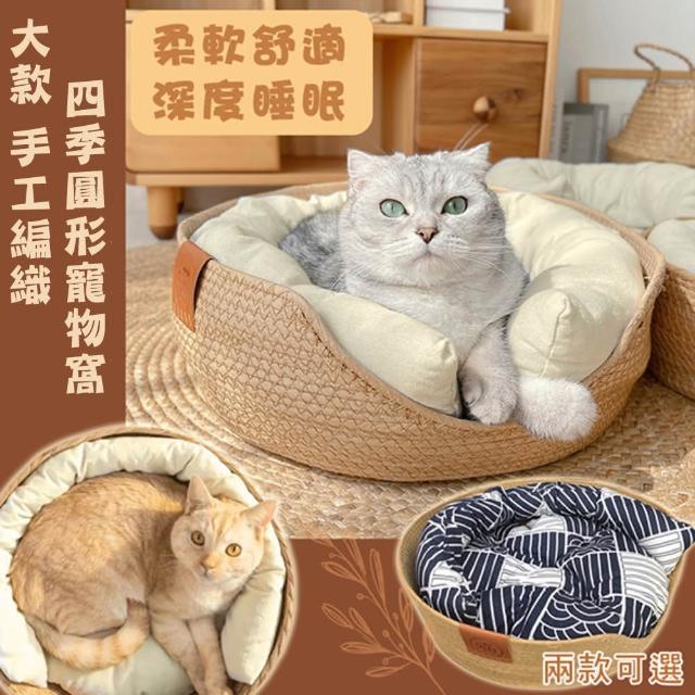 〖美佳小舖〗大款 手工編織四季圓形寵物窩藤編貓窩 貓床 睡墊 深度睡眠