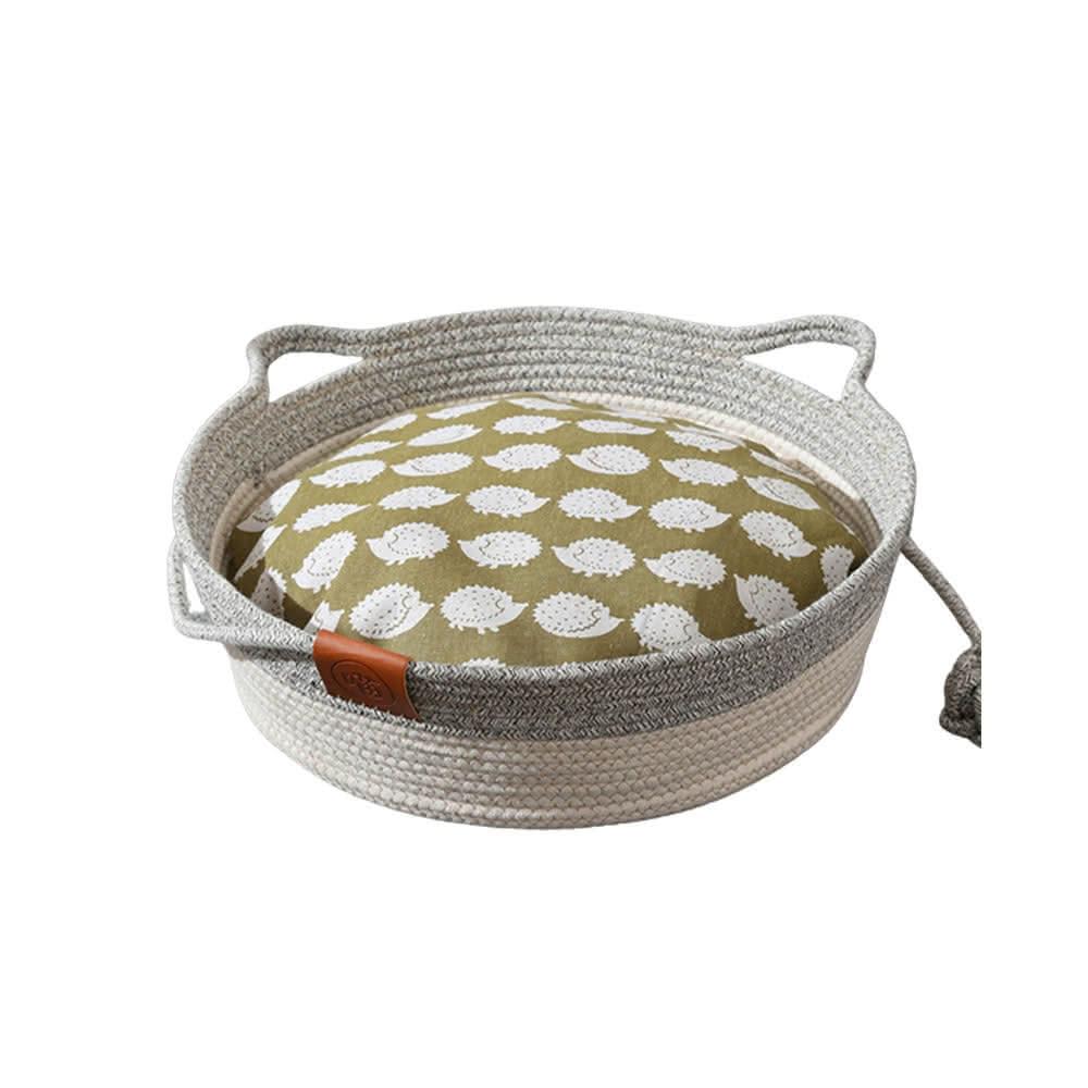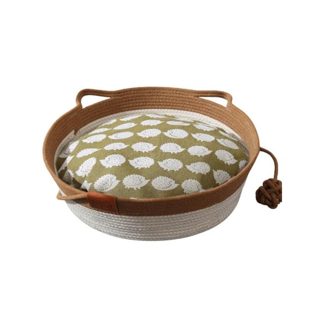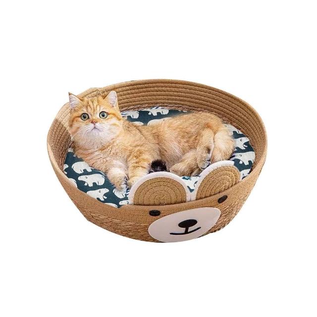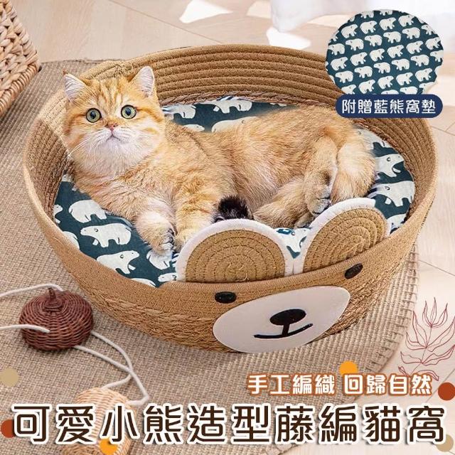 〖美佳小舖〗可愛小熊造型藤編貓窩 附贈睡墊圓型貓窩 寵物窩 睡窩 編織涼窩 貓床 睡墊 深度睡眠