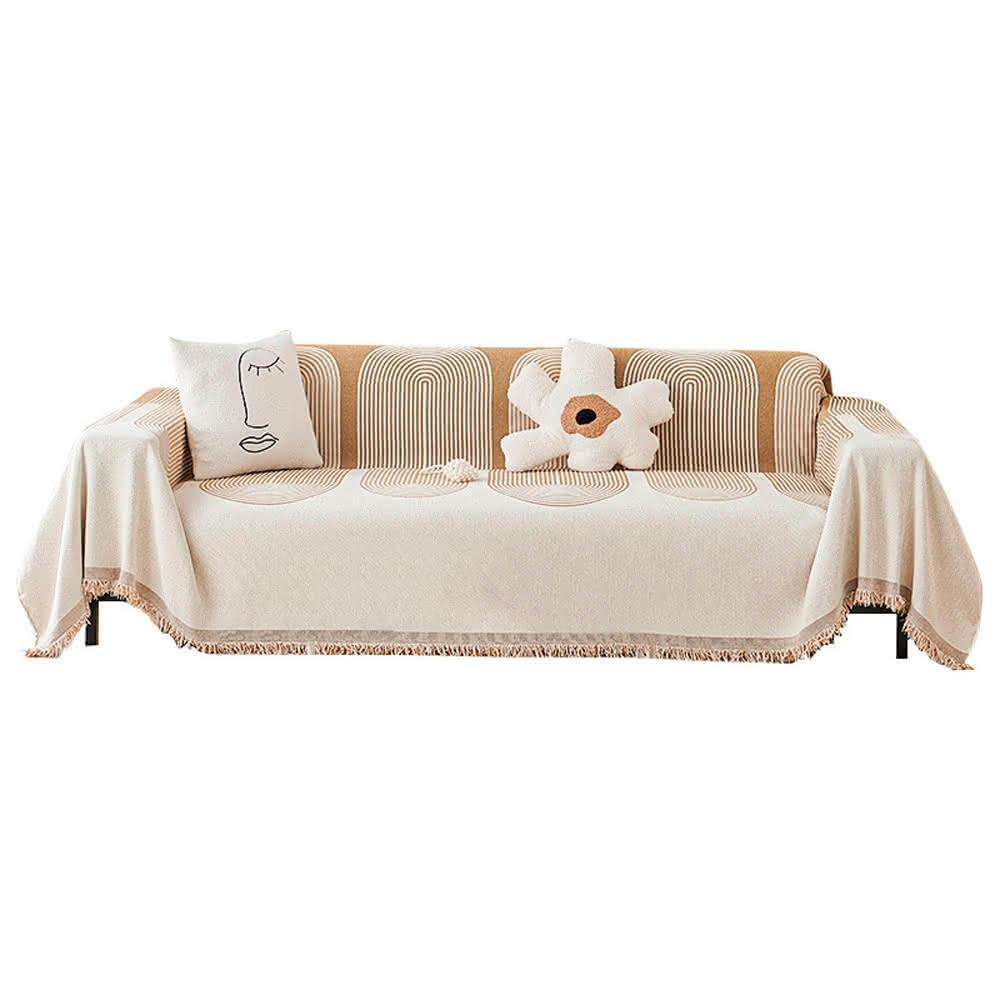 〖美佳小舖〗北歐現代年輪流蘇全蓋式沙發巾 三人座沙發墊 沙發套 大方巾 蓋毯 防髒污