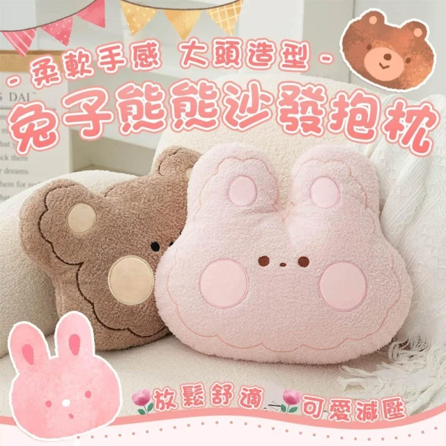 〖美佳小舖〗 柔軟手感大頭造型兔子熊熊沙發抱枕 靠墊 靠枕 座椅抱枕 靠墊 玩偶 腰靠墊 趴枕