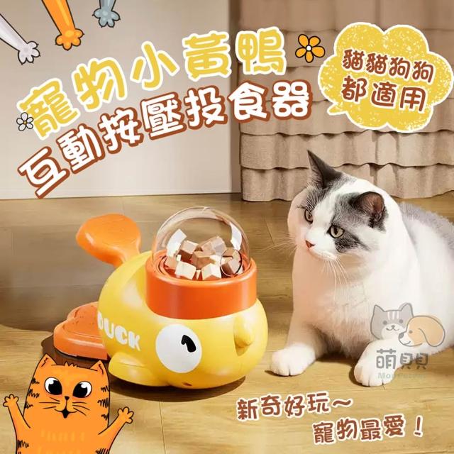 〖美佳小舖〗寵物小黃鴨互動按壓投食器 漏食器 漏食玩具 餵食器 解壓 訓練 玩耍 貓玩具 狗玩具