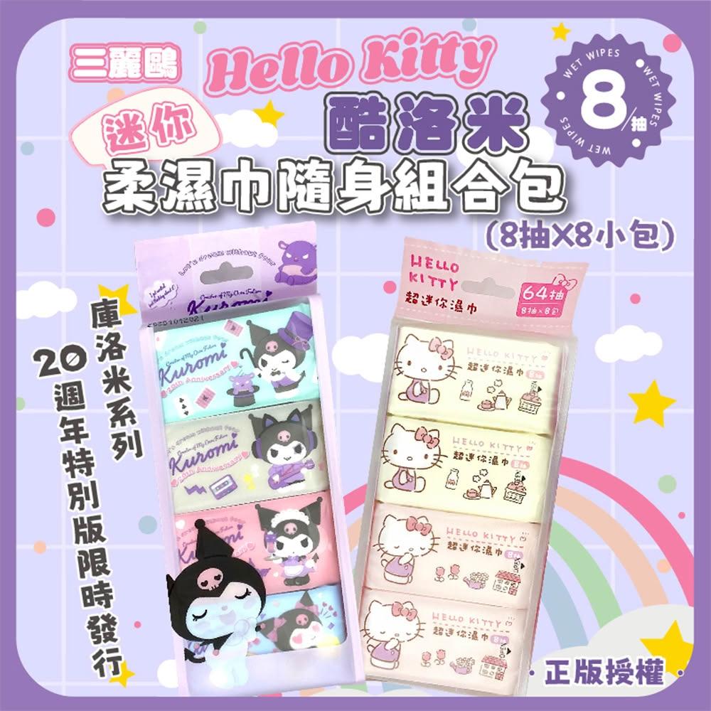 〖美佳小舖〗三麗鷗 Hello Kitty庫洛米 迷你柔濕巾隨身組合包(8抽X8小包) 濕紙巾 濕巾 正版授權 口袋輕巧