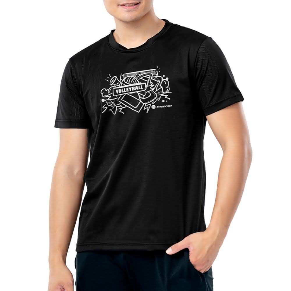 MISPORT 運動迷台灣製 運動上衣 T恤-球類塗鴉-排球塗鴉/運動排汗衫(MIT專利呼吸排汗衣 氣孔衣)