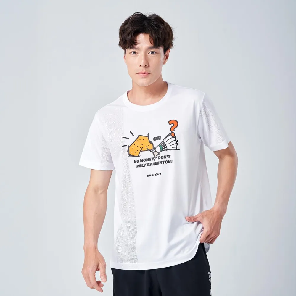 MISPORT 運動迷台灣製 運動上衣 T恤 - 沒錢不要打羽球-炸雞/運動排汗衫(MIT專利呼吸排汗衣 氣孔衣)