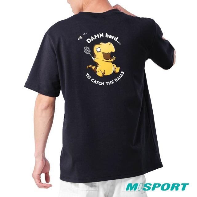 MISPORT 運動迷台灣製 運動上衣 T恤-短手呆腦獸(背印款) - 羽球(MIT立體機能棉衣 排汗衣)