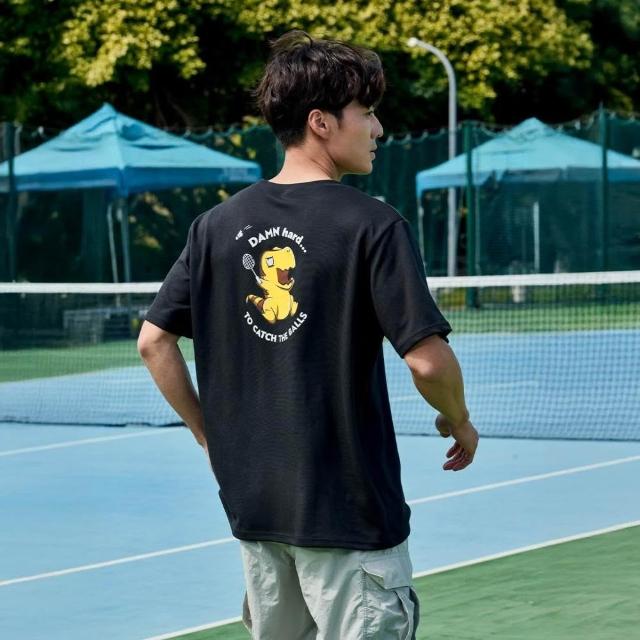 MISPORT 運動迷台灣製 運動上衣 T恤-短手呆腦獸(背印款) - 羽球(MIT立體機能棉衣 排汗衣)