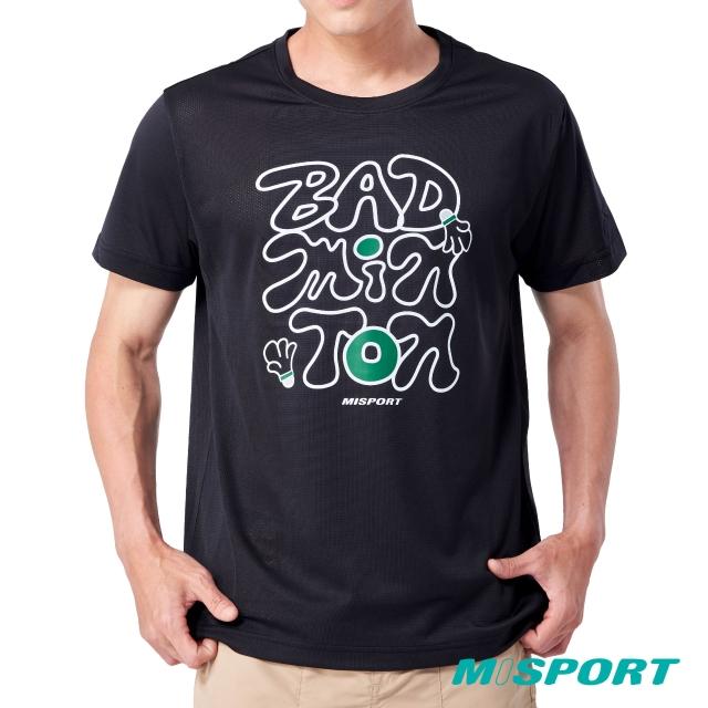 MISPORT 運動迷台灣製 運動上衣 T恤 - 運動泡泡字塗鴉 - 羽球/運動排汗衫(MIT專利呼吸排汗衣 氣孔衣)