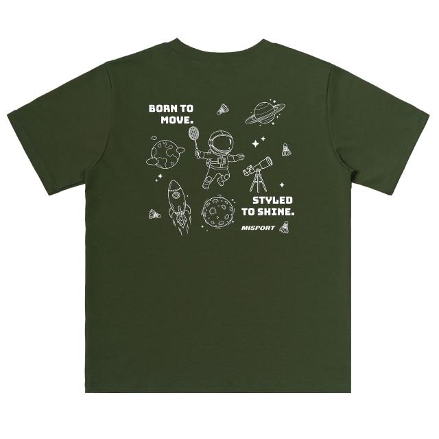 MISPORT 運動迷台灣製 運動服飾 T恤-羽球太空人-大星際線條背圖款(MIT立體機能棉衣 排汗衣)