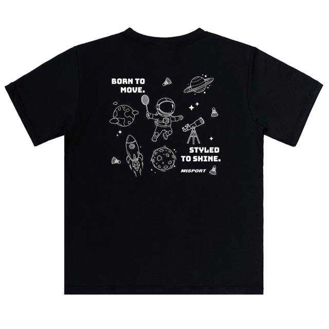 MISPORT 運動迷台灣製 運動服飾 T恤-羽球太空人-大星際線條背圖款(MIT立體機能棉衣 排汗衣)