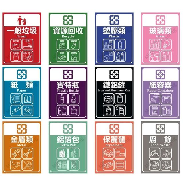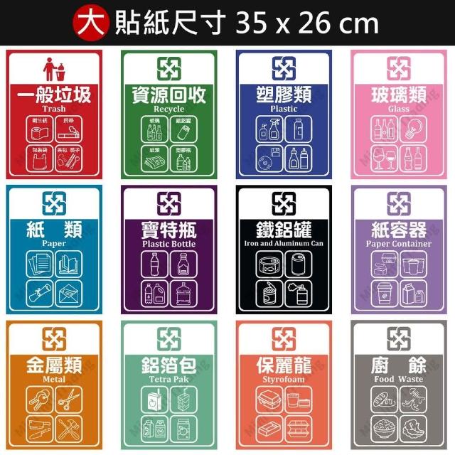 米霓垃圾分類貼紙 垃圾桶貼紙 資源回收 貼紙 垃圾筒(分類貼紙 垃圾桶貼紙 一般垃圾 垃圾桶 廚餘 回收)