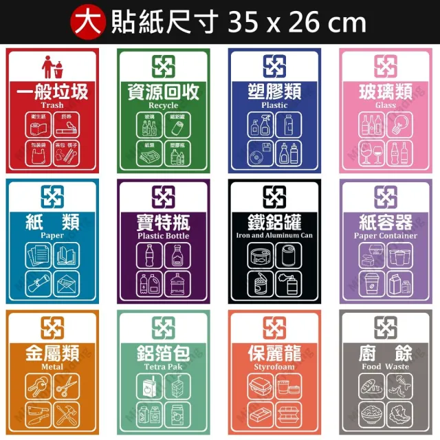 米霓垃圾分類貼紙 垃圾桶貼紙 資源回收 貼紙 垃圾筒(分類貼紙 垃圾桶貼紙 一般垃圾 垃圾桶 廚餘 回收)