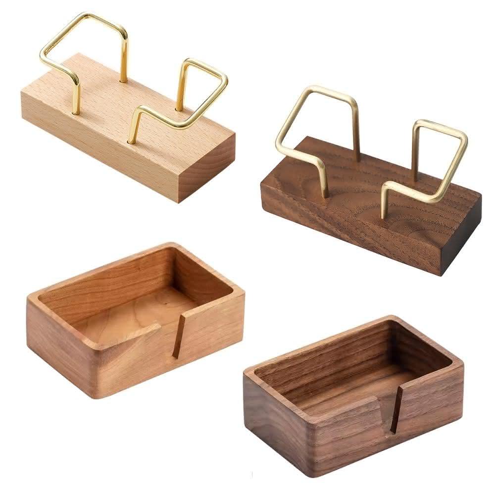 米霓木質金屬.V形口款 木質名片盒 名片架 木頭 創意 名片收納盒(名片夾 盒子 名片展示卡片盒)