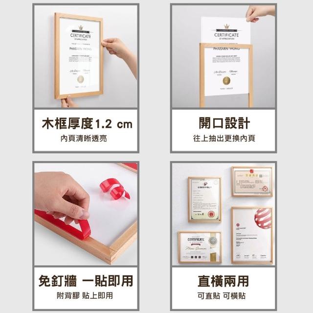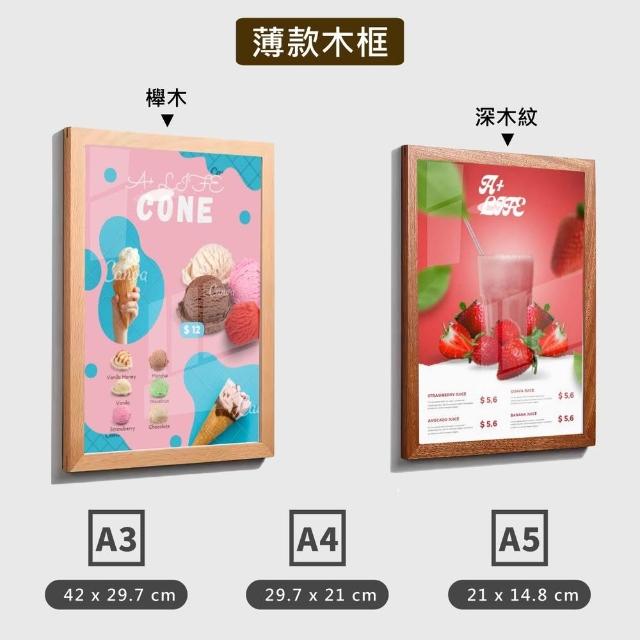 薄款木框 木質壁貼告示牌 壁框 相框 展示架 菜單 裱框 牆壁 證照 獎狀 證照框 海報框 A4 A5 木頭 壁框 黏貼式 免打孔