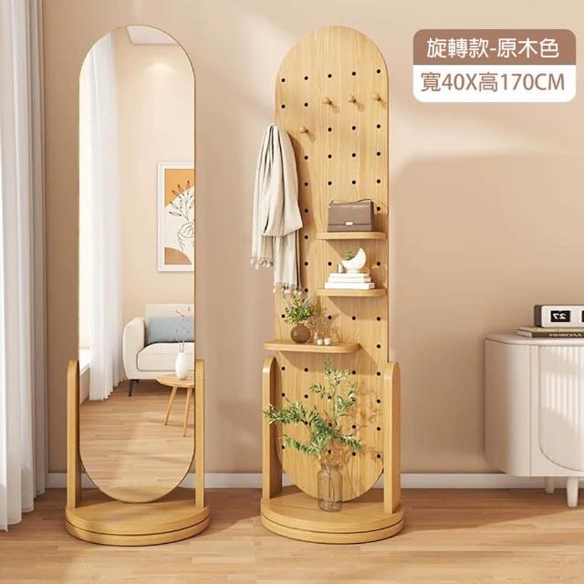 Easy Life 家居館落地式旋轉洞洞板穿衣鏡(穿衣鏡 全身鏡 置物架 掛衣架)