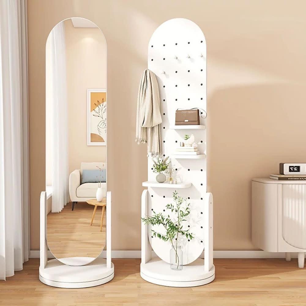 Easy Life 家居館落地式旋轉洞洞板穿衣鏡(穿衣鏡 全身鏡 置物架 掛衣架)