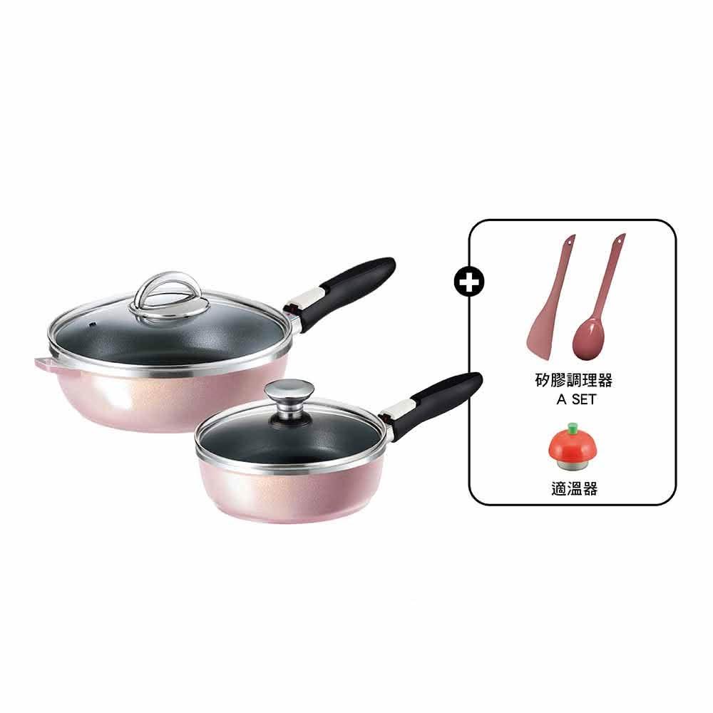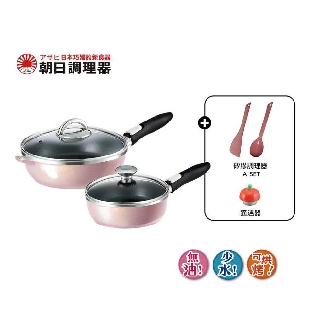 ASAHI 朝日鍋具可拆式全能平底鍋L+S香檳粉色 26cm+22cm(日本製平底鍋)