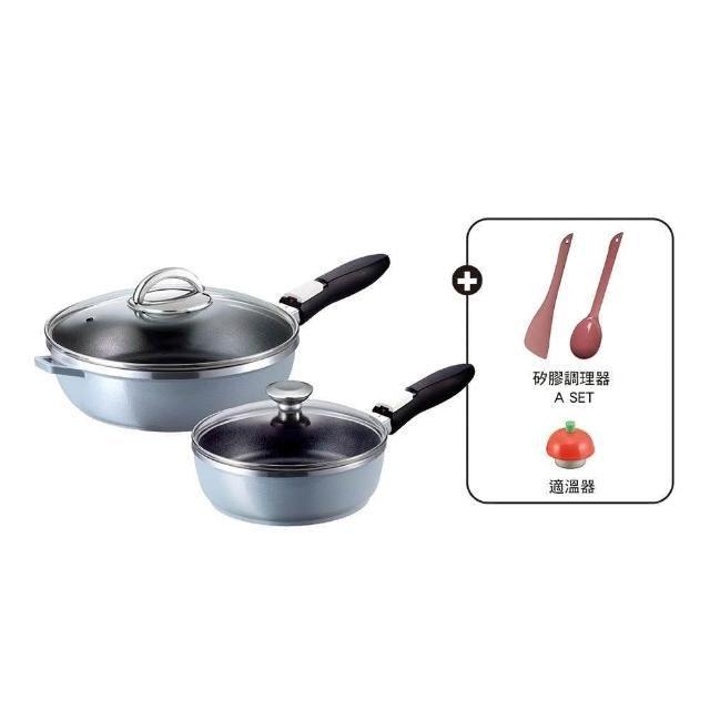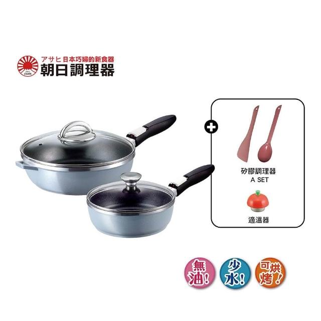ASAHI 朝日鍋具可拆式全能平底鍋L+S鑽石藍色 26cm+22cm(日本製平底鍋)