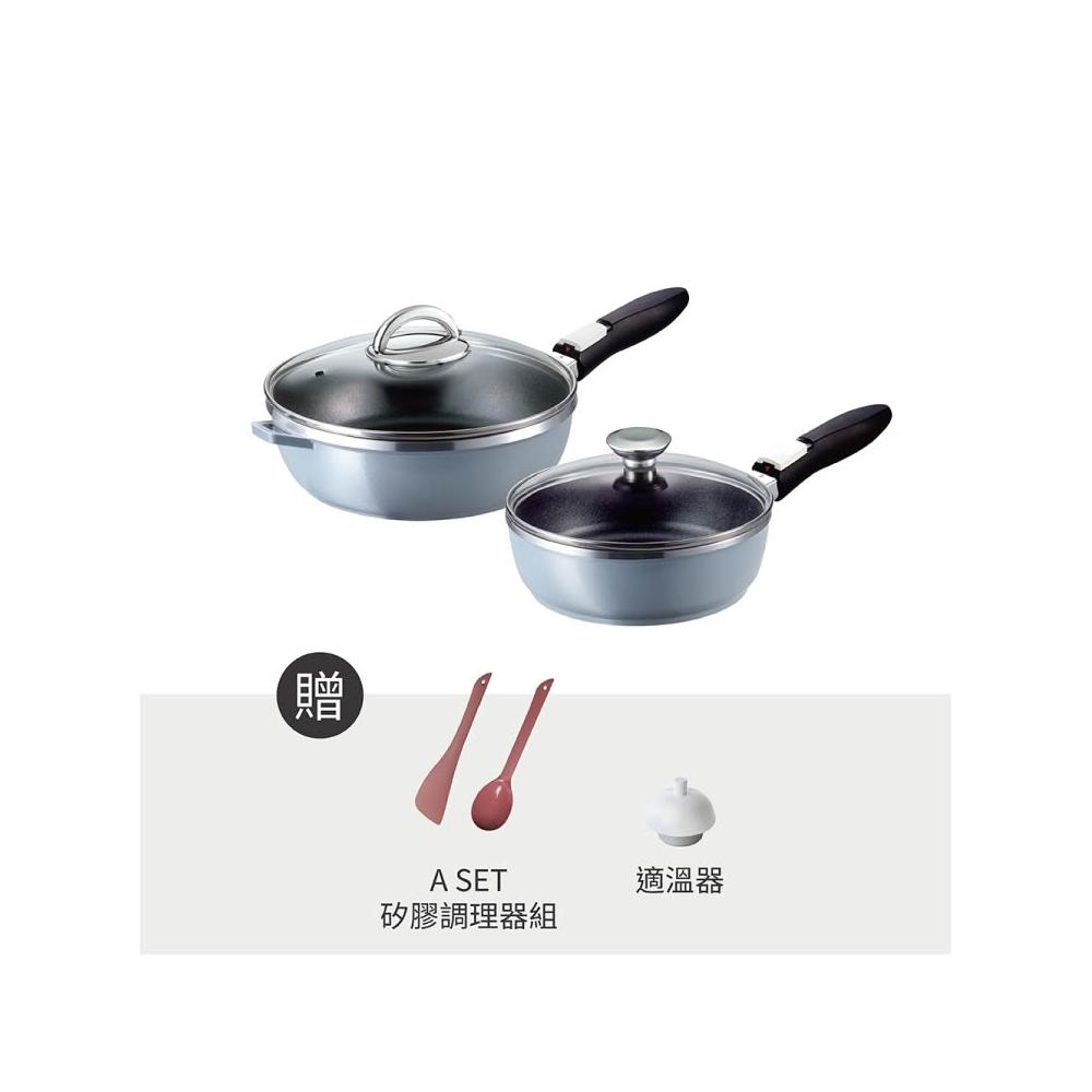 ASAHI 朝日鍋具可拆式全能平底鍋(L)(S)鑽石藍 26cm+22cm (日本製平底鍋)
