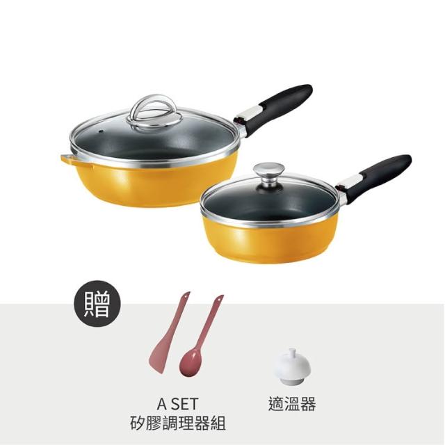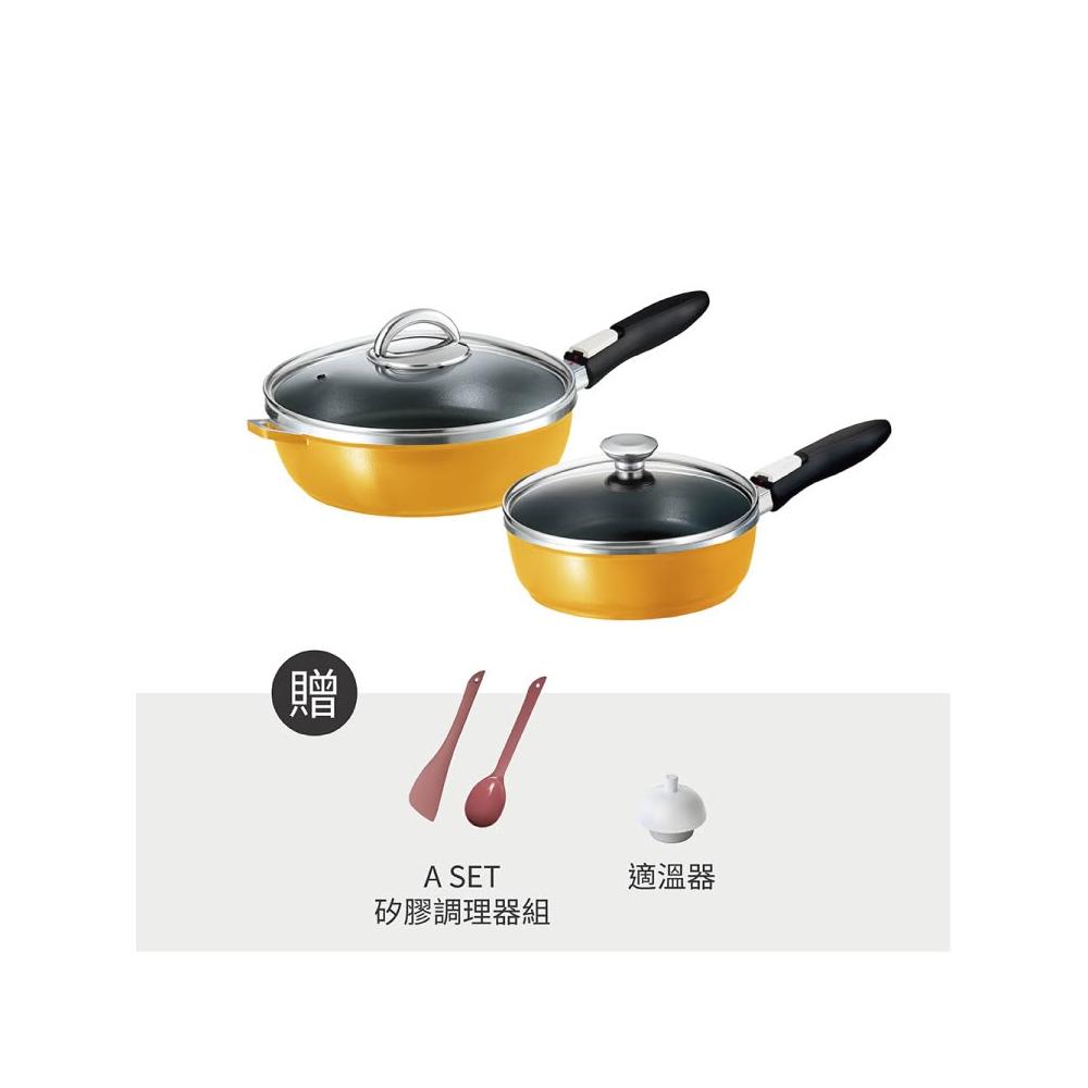 ASAHI 朝日鍋具可拆式全能平底鍋(L)(S)芒果黃 26cm+22cm (日本製平底鍋)