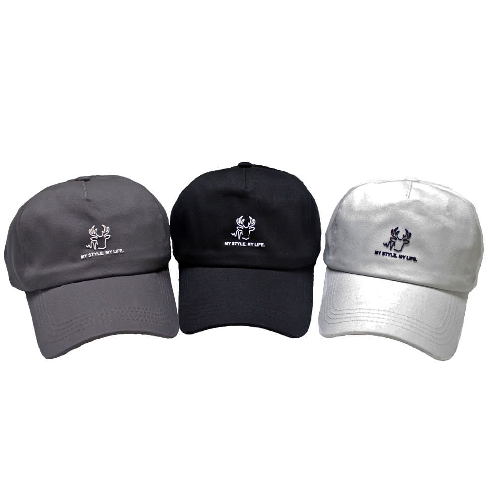 瑟夫貝爾CERF BELL 全棉立體膠框鹿頭圖案男性棒球帽(灰色 黑色 白色)