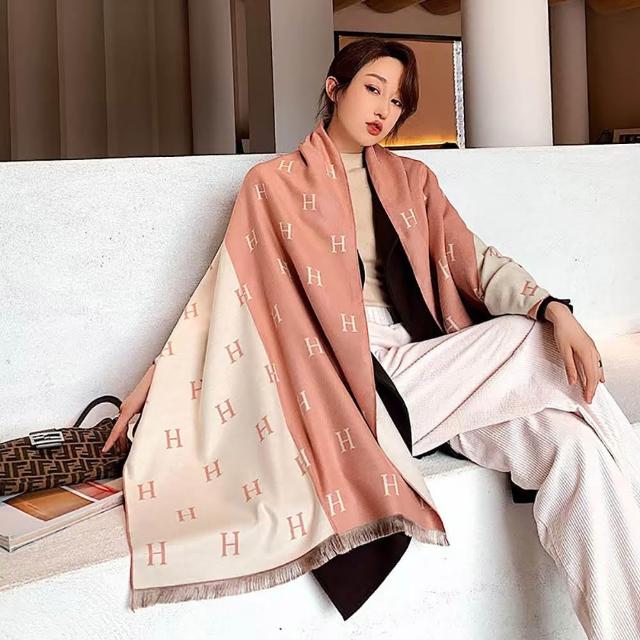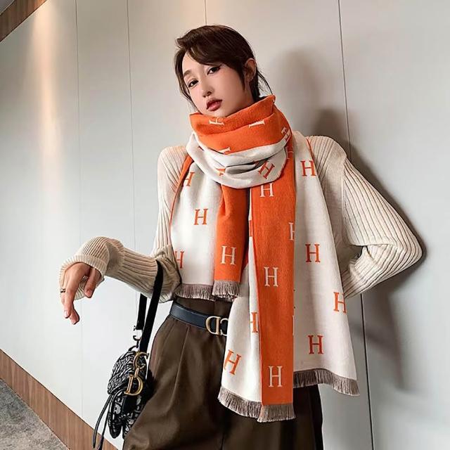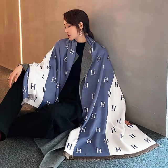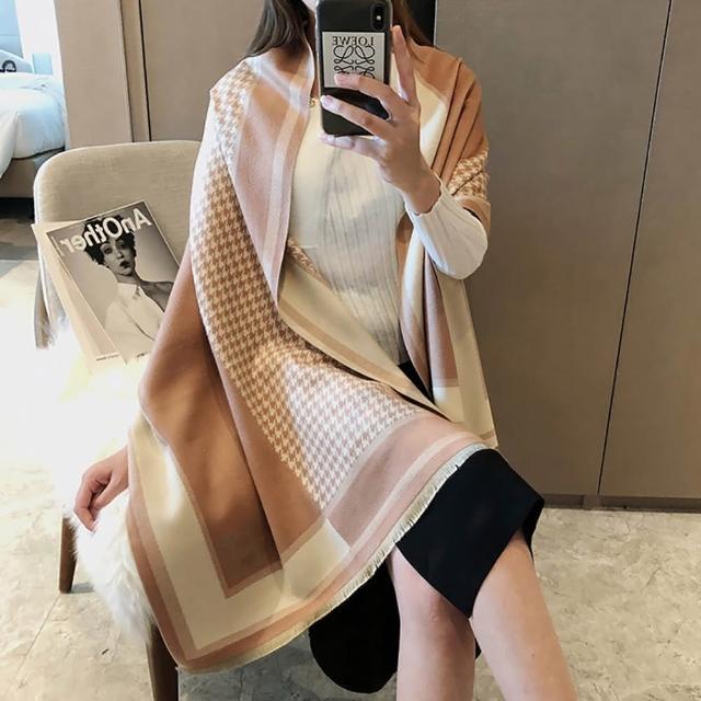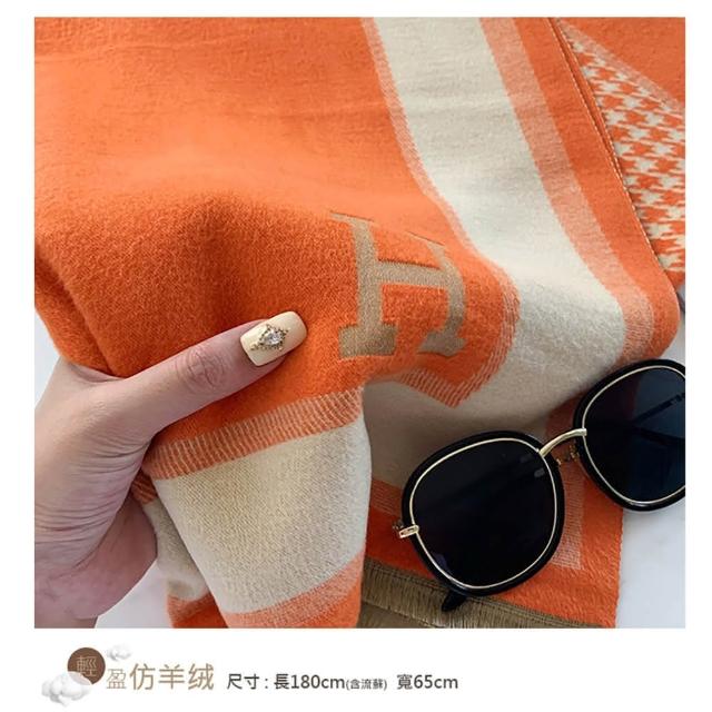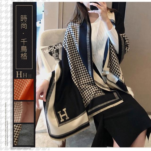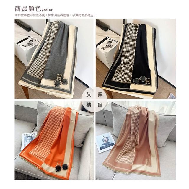 Billgo*現貨*時尚字母千鳥格羊絨圍巾 磨毛絨面長型披肩-2款9色秋冬、柔軟、韓版