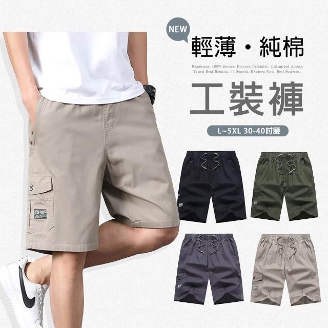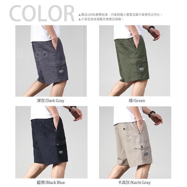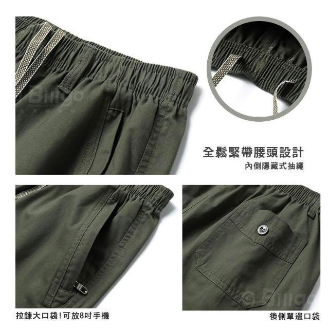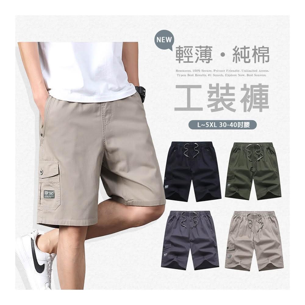 Billgo鬆緊腰輕薄純棉工裝短褲|多口袋五分褲 大尺碼L-5XL 男休閒款 Billgo比爾購