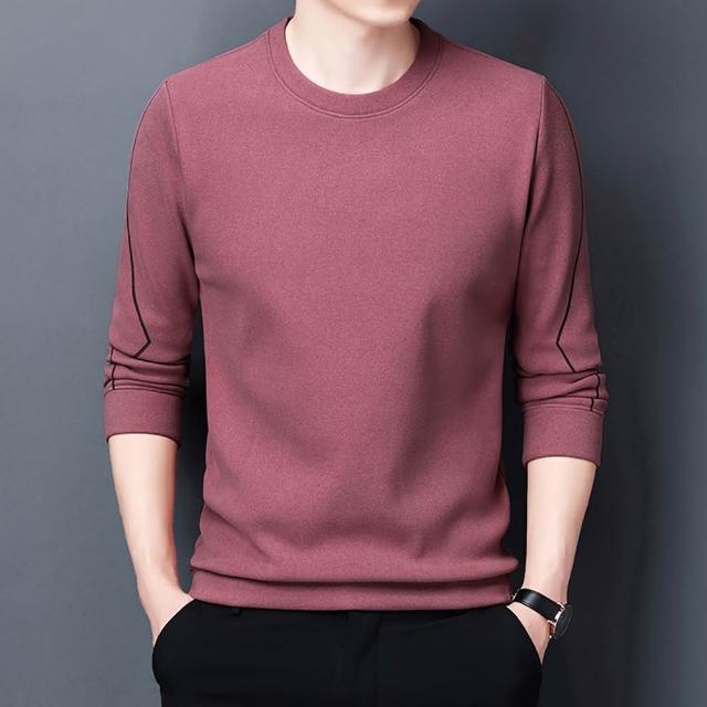 Billgo*現貨*德絨線條保暖圓領長袖T恤-4色 M~4XL碼 柔軟毛絨刷毛感秋冬男上衣秋冬、保暖、基本款