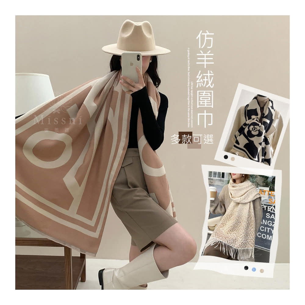 Billgo*現貨*小香風山茶花幾何圍巾披肩-3款 歐美韓國大牌感流蘇保暖仿羊絨毛毯日式、甜美、穿搭
