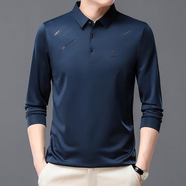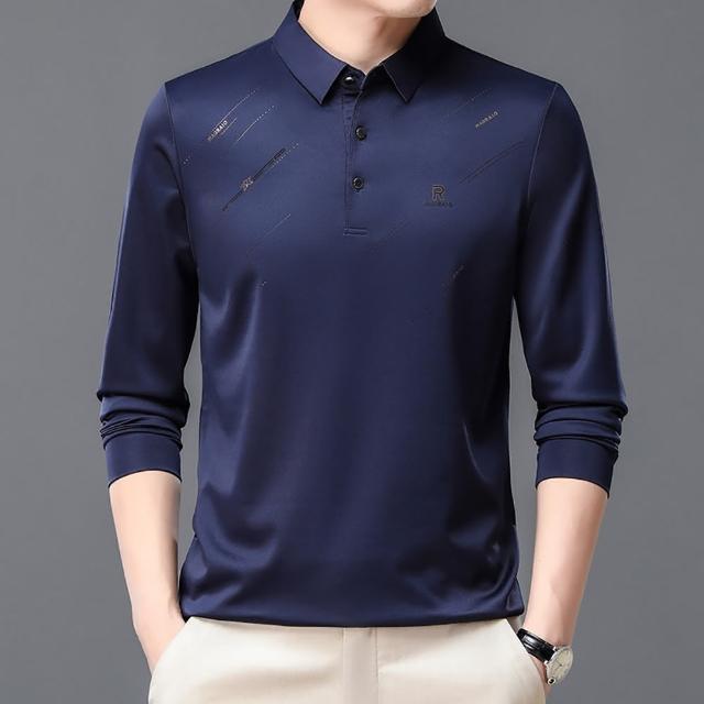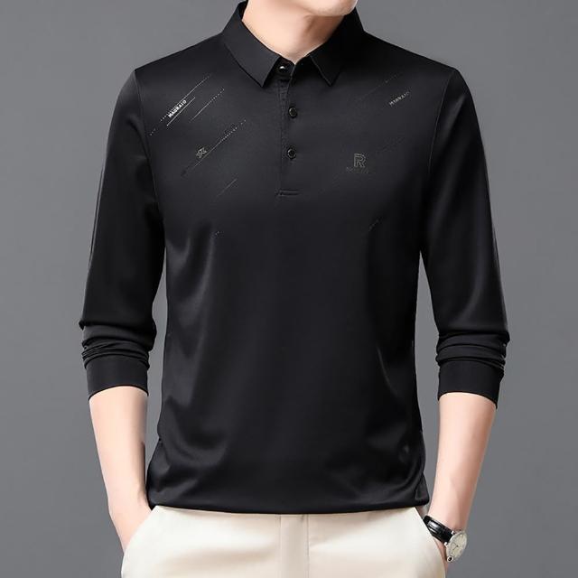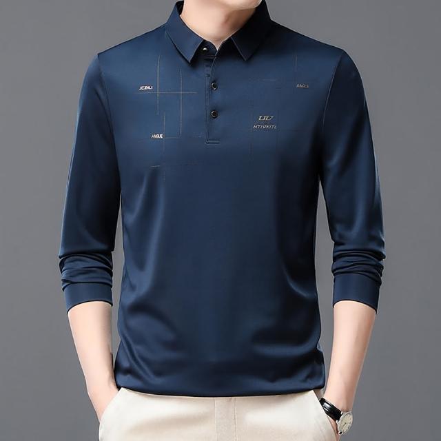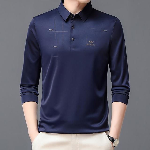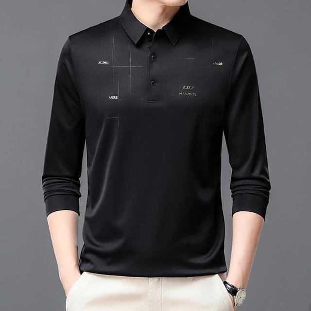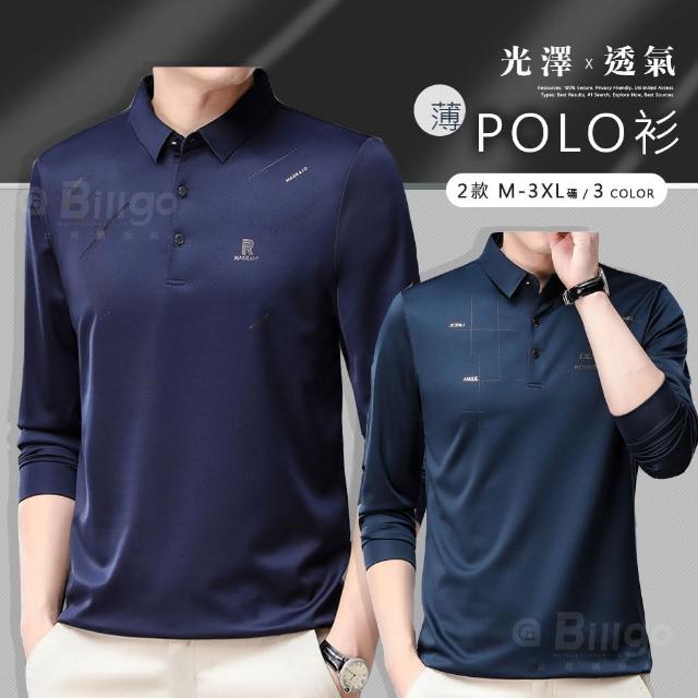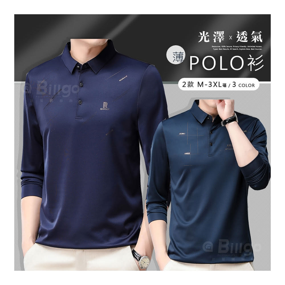 Billgo*現貨*滑面閃耀印花長袖POLO衫-2款 3色 M~3XL碼 抗皺涼爽休閒男上衣親膚、四季、百搭