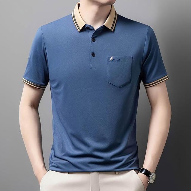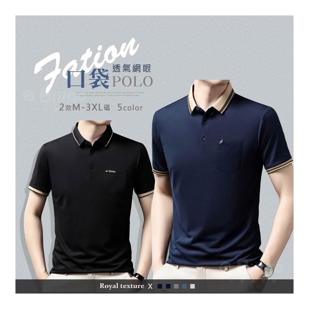Billgo*現貨*刺繡短袖口袋POLO衫-2款5色 M~3XL碼 紳士翻領涼爽男上衣商務、中年
