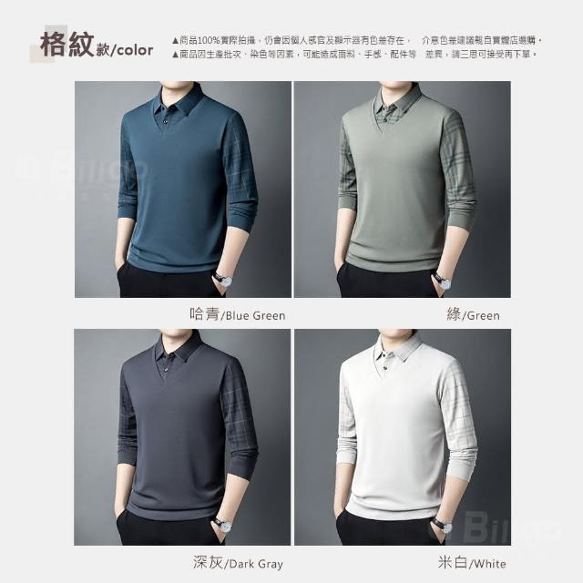 Billgo*現貨*印花襯衫假兩件POLO衫-2款 4色 M~3XL碼 線條襯衫格紋直襯衫感 秋冬男上衣