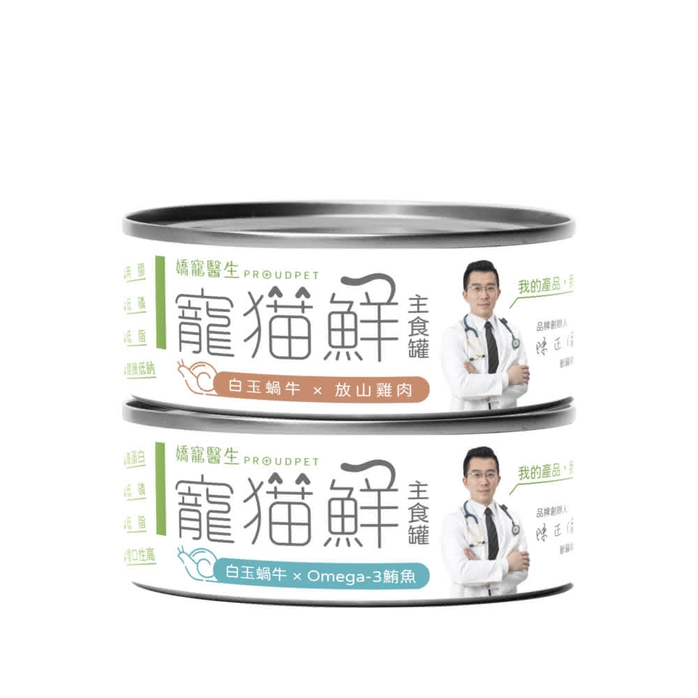 PROUDPET 嬌寵醫生寵貓鮮 貓咪低磷無膠主食罐 蝸牛鮪魚/雞肉 各12入貓罐頭/全齡貓適用/寵物罐頭)-官方直營