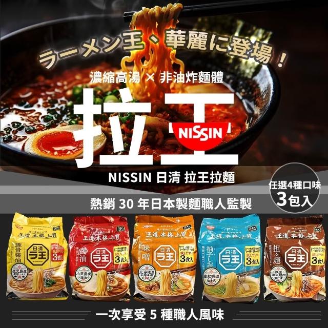NISSIN 日清拉王拉麵 3食入x4袋任選 (醬油/味噌/柚子鹽/擔擔麵/豚骨醬油)