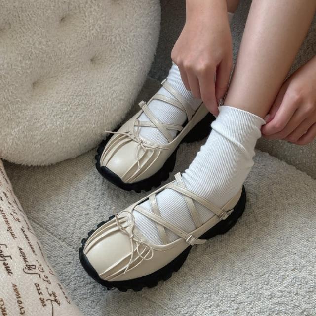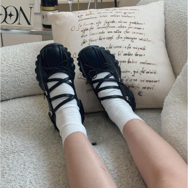DONGCHICHI BOTIQUE現貨 軟皮 🦋厚底老爺鞋 正韓韓國代購 交叉 蝴蝶結 Y2K 休閒鞋 芭蕾舞鞋 大尺碼 A925