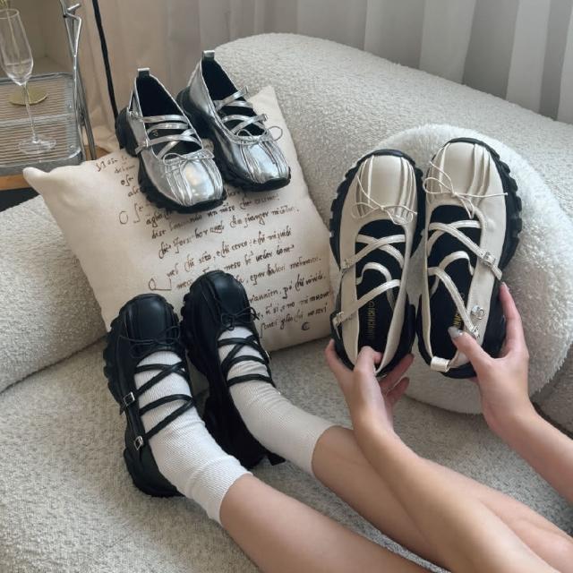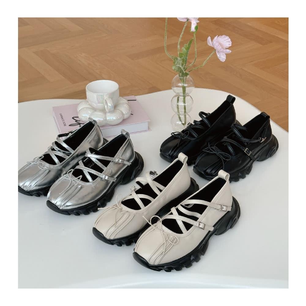 DONGCHICHI BOTIQUE現貨 軟皮 🦋厚底老爺鞋 正韓韓國代購 交叉 蝴蝶結 Y2K 休閒鞋 芭蕾舞鞋 大尺碼 A925