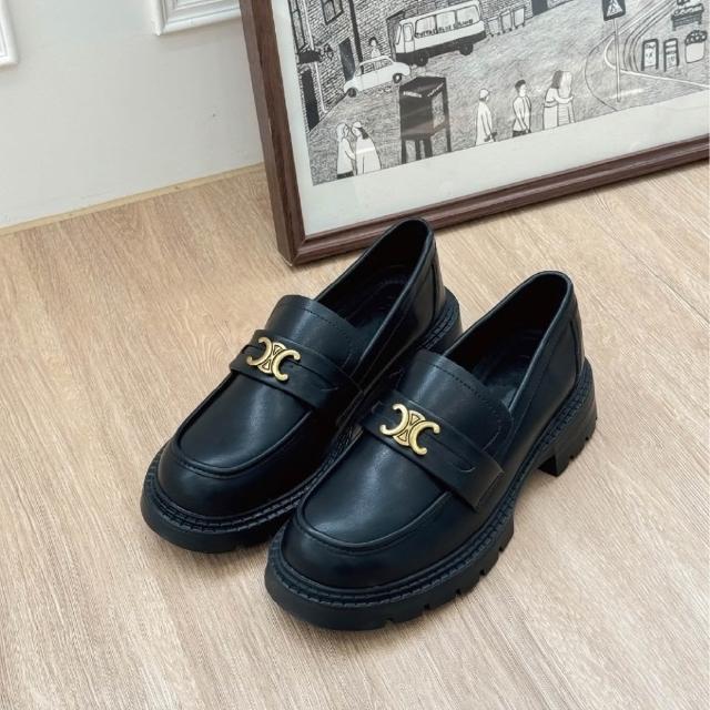 現貨 超級軟 🩷 好穿爆炸 金釦 樂福鞋 真皮 厚底鞋 真皮皮鞋 黑色皮鞋 C655