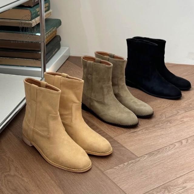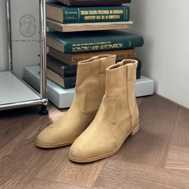 簡約好搭💖麂皮 短靴 圓頭 低跟靴子 踝靴 韓國鞋 機車靴 靴子 女生 C450