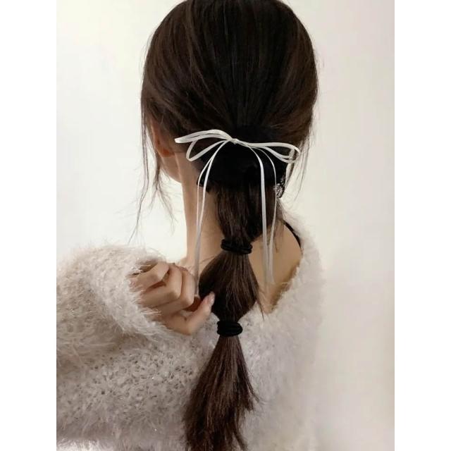 現貨白色 蕾絲 長飄帶 蝴蝶結 髮圈 甜美氣質 韓系百搭 大腸髮圈 髮飾 D394