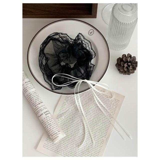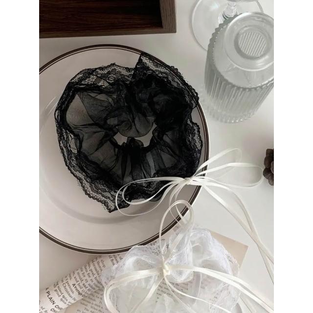 現貨白色 蕾絲 長飄帶 蝴蝶結 髮圈 甜美氣質 韓系百搭 大腸髮圈 髮飾 D394