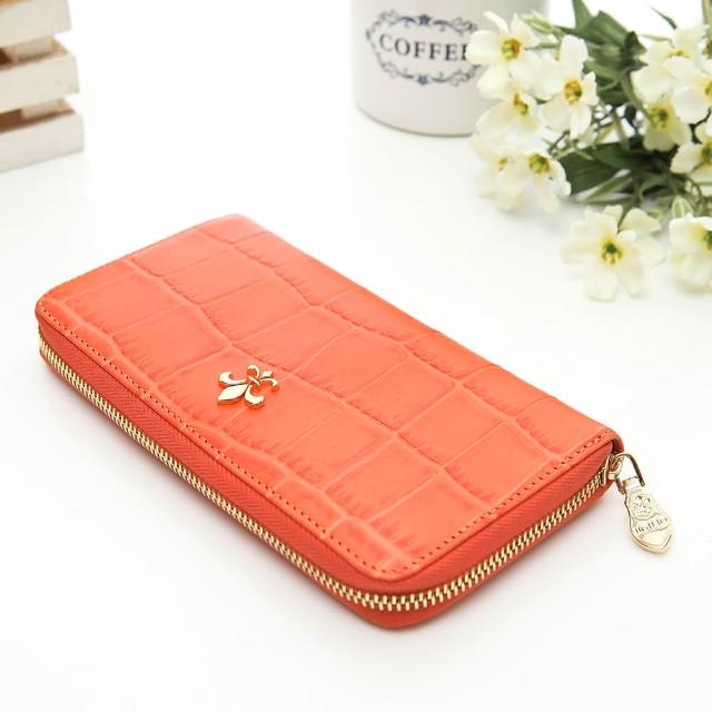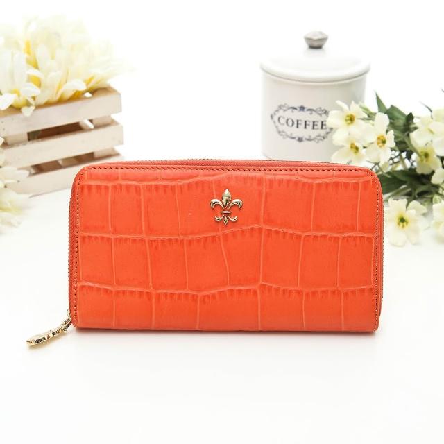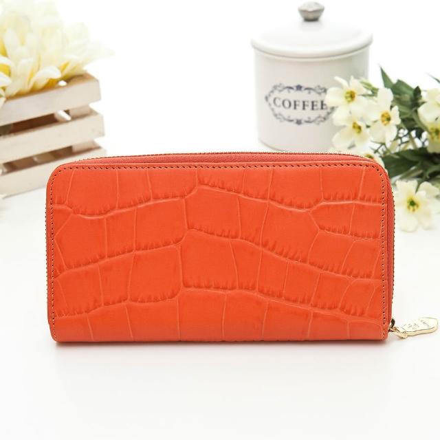 Bgilio義大利BGilio - 亮麗鱷魚紋拉鏈長夾 - 橘紅色(1453.323-11)