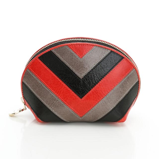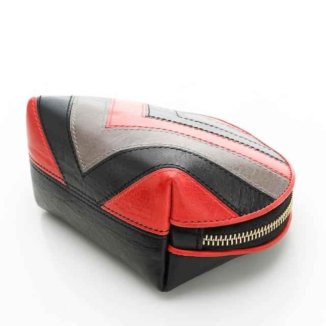 LouiseC.蠟感牛皮復古配色大化妝包-黑色(1954.301-05)
