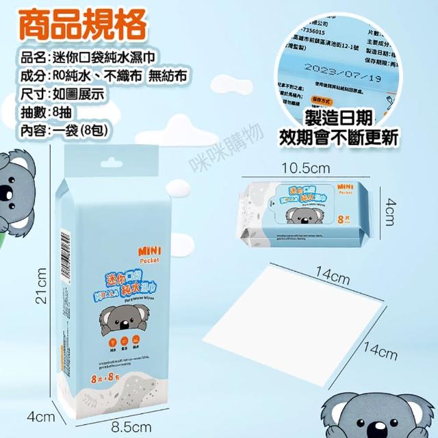 咪咪購物迷你口袋純水濕巾|8包/袋 濕紙巾隨身包 超迷你濕紙巾 外出攜帶型 純水濕紙巾 擦臉巾 洗臉巾 擦手巾 溼紙巾 隨身濕紙巾 濕巾 濕紙巾