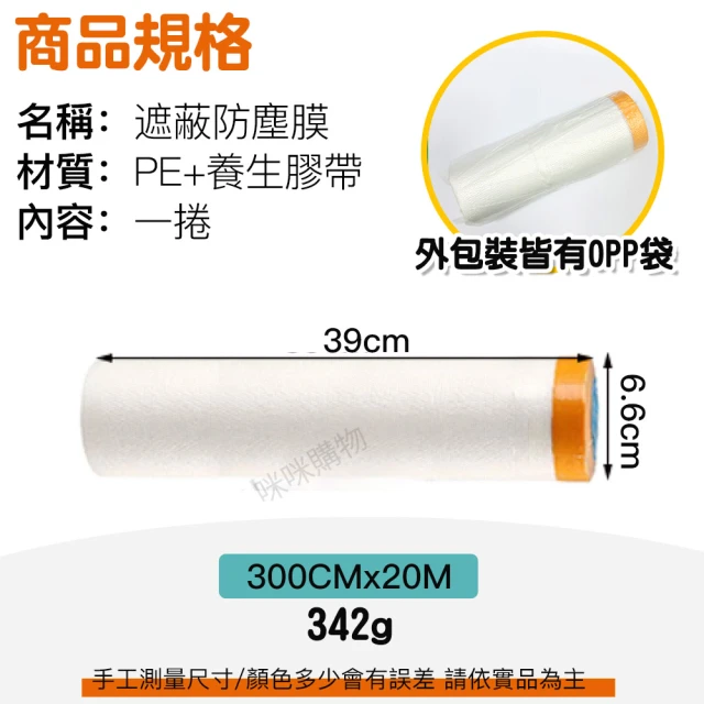 咪咪購物遮蔽防塵膜300CMx20M 一捲(養生膠帶 裝潢防塵 噴漆施工 裝修家具 防塵罩 防塵布 防塵套 防水罩 防塵膜 靜電保護膜 養身膠帶)