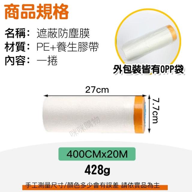 咪咪購物遮蔽防塵膜400CMx20M 一捲(養生膠帶 裝潢防塵 噴漆施工 裝修家具 防塵罩 防塵布 防塵套 防水罩 防塵膜 靜電保護膜 養身膠帶)