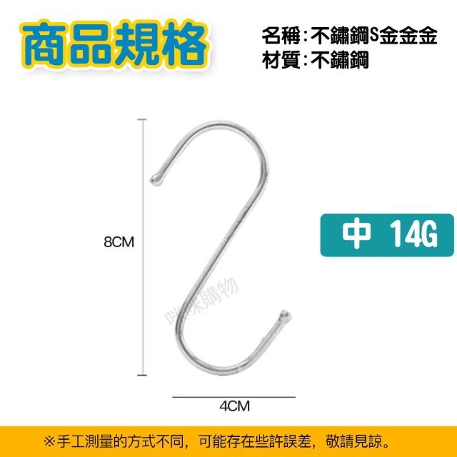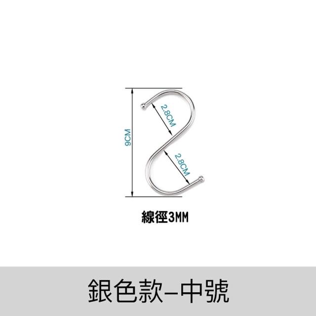 咪咪購物S型不鏽鋼掛勾|中號|10入(S型掛勾 廚房掛勾 衣帽掛鉤 不鏽鋼掛勾 S掛勾 S勾 S掛鉤 鐵鉤 掛鉤 掛勾 金屬掛勾 雙掛勾 S型掛鉤)