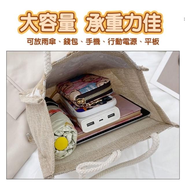 咪咪購物可愛小熊亞麻手提袋|一入(亞麻手提袋 手提袋 午餐袋 購物袋 麻布袋 棉麻提袋)
